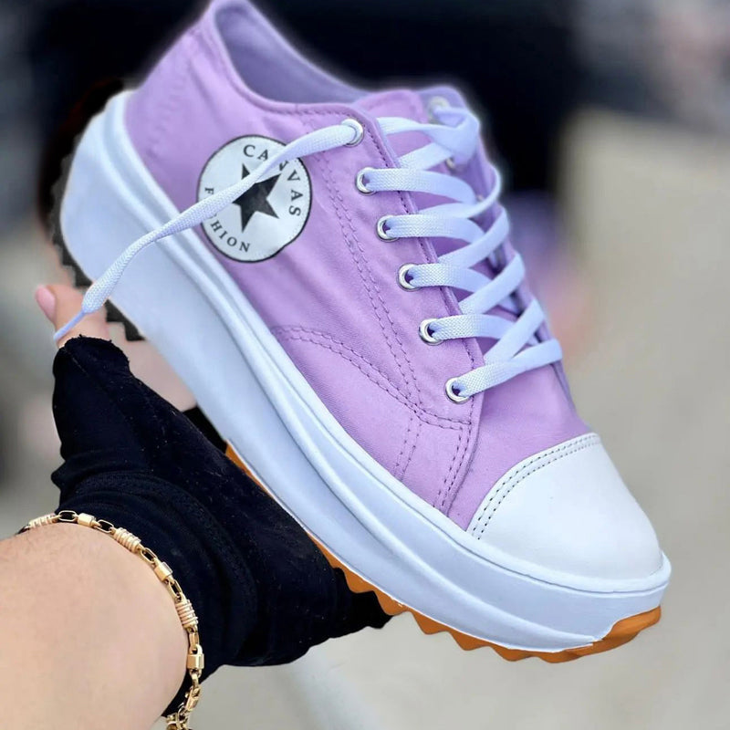 Women's Fashion Canvas Color-Blocking Lace-up Platform Heel Sneakers$39.99 USD$69.99 USD