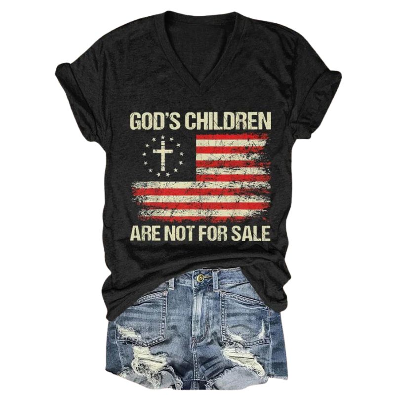 • Women's Casual God'S Children Are Not For Sale Short Sleeve V-neck T-Shirt