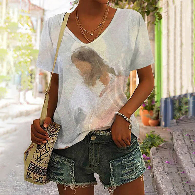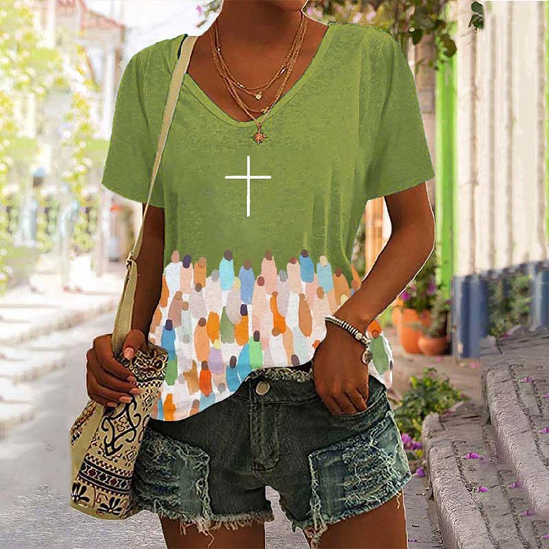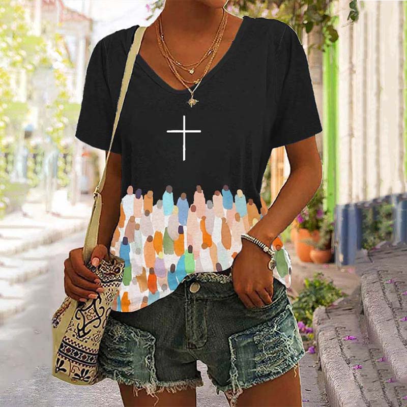 • Women's Faith Respect Jesus Print V-Neck Tee