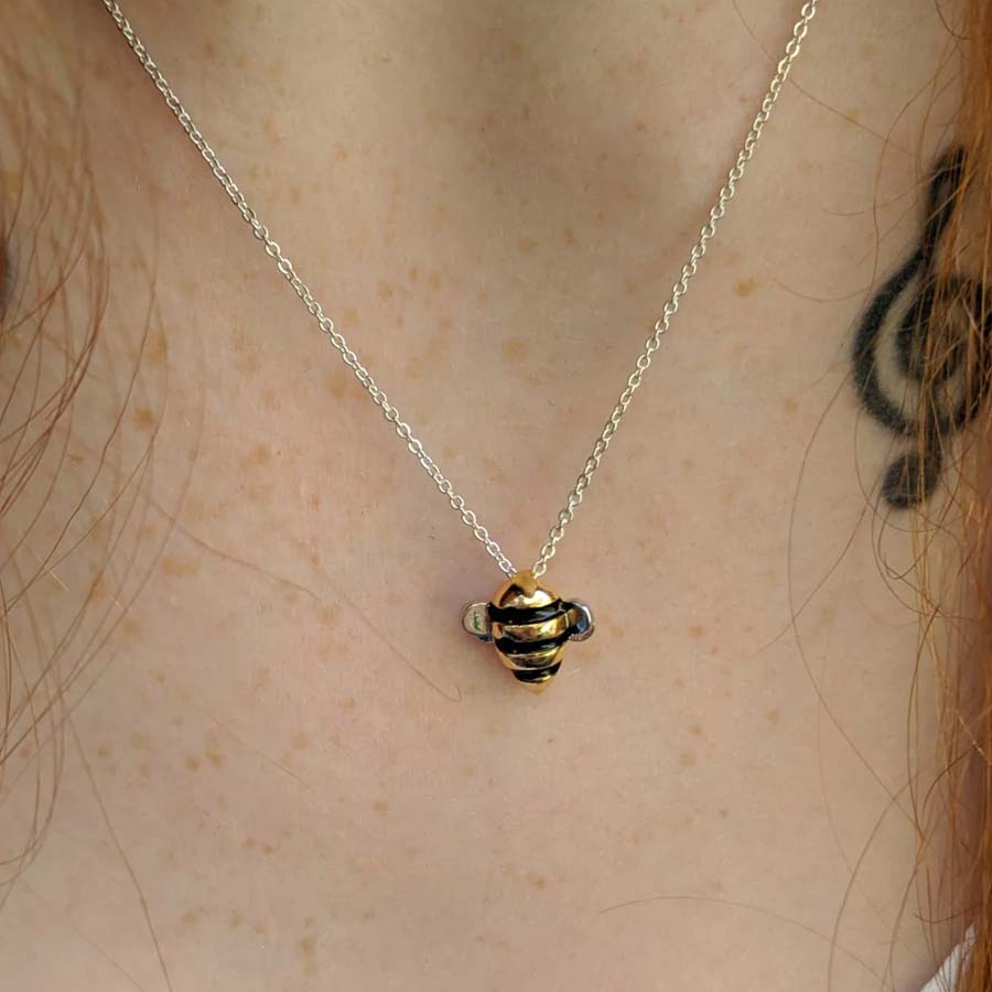 Reminiscent of the fuzzy, plump little bees that buzz around summer gardens, wear our Adopt a Bee Necklace and Earrings to express your love of bees, or get it for a bee lover you know as thoughtful and meaningful gift!