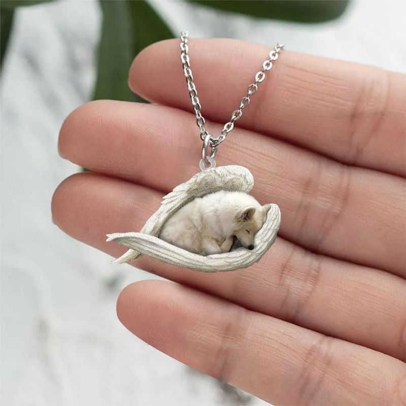 American Eskimo Sleeping Angel Stainless Steel Necklace SN098