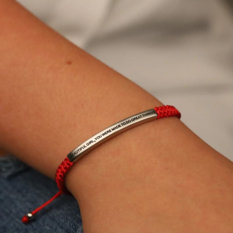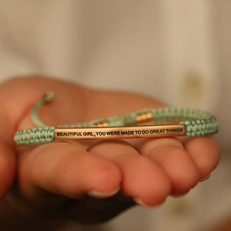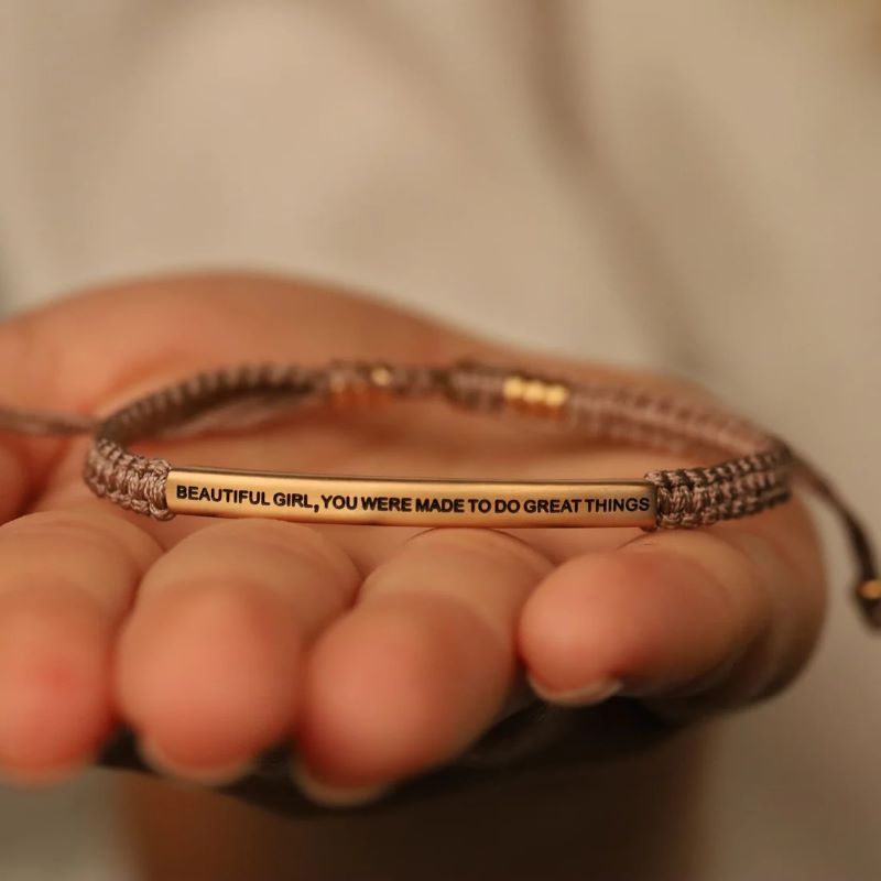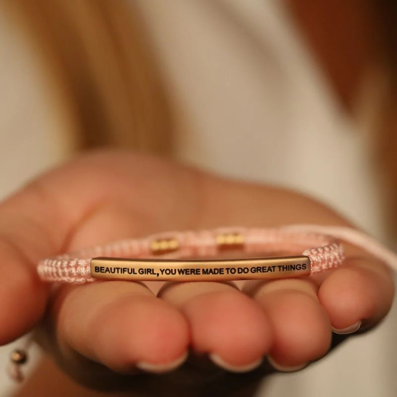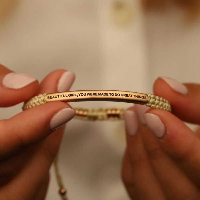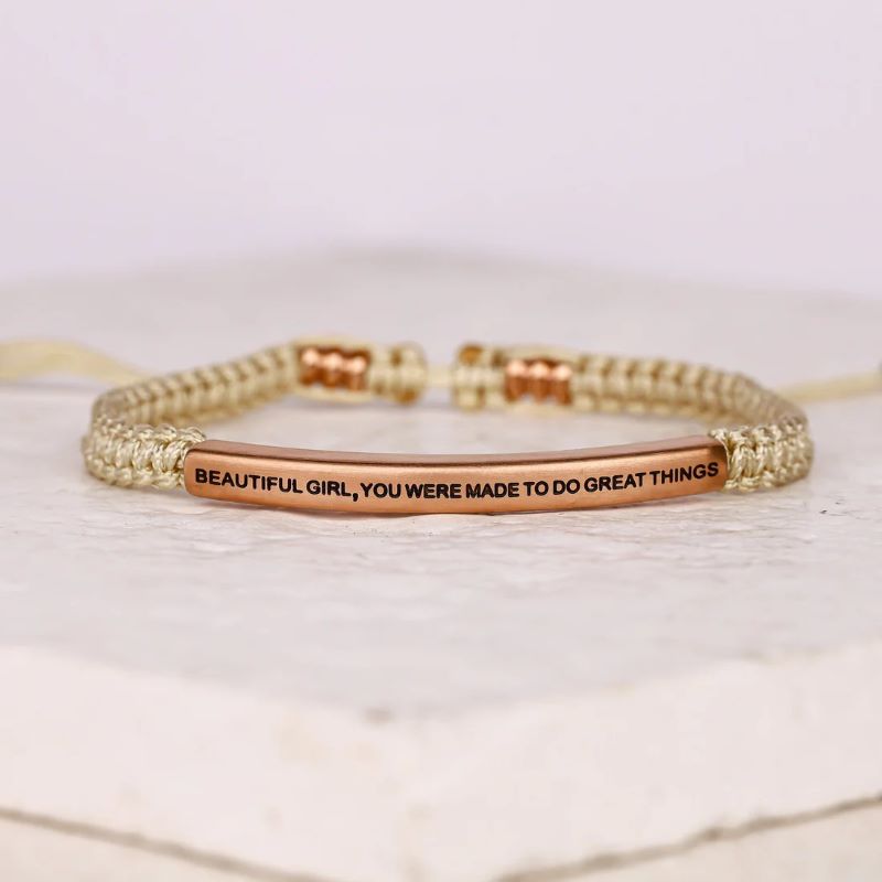When you feel doubt and fear, look down at your bracelet and remember BEAUTIFUL GIRL, YOU WERE MADE TO DO GREAT THINGS.
