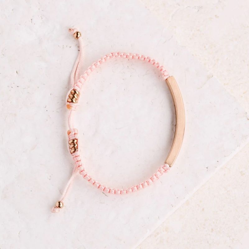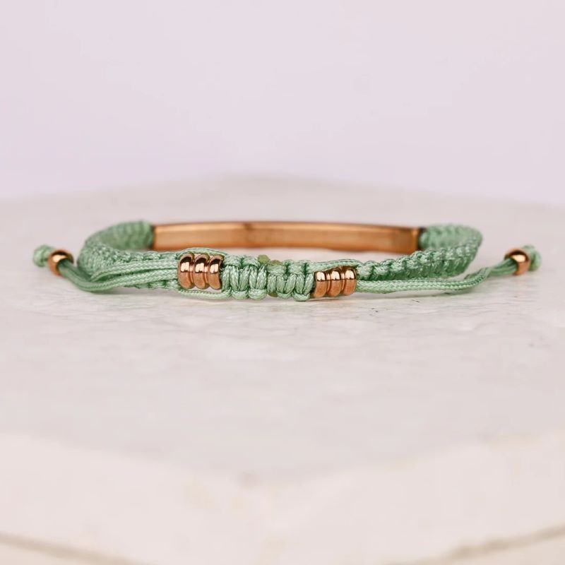 A perfect everyday bracelet that looks great layered or on its own. Our hand-crafted, adjustable, macrame bracelets are made from sturdy nylon and feature an engraved bar made of stainless steel making them hypoallergenic and tarnish resistant.