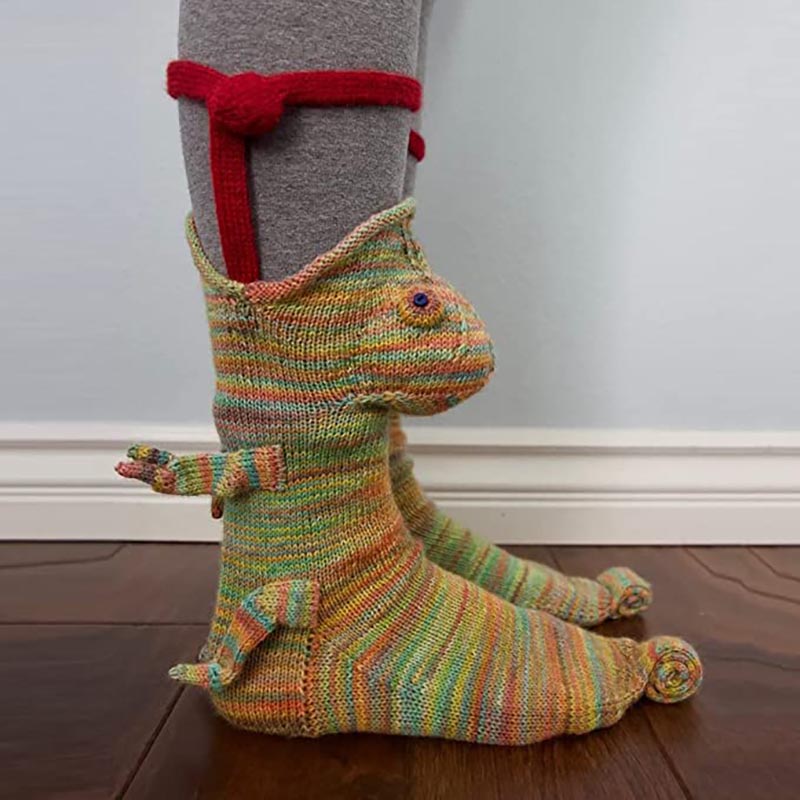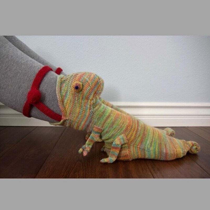 It looks like a chameleon that eats your feet.You can give it to your kids and they will be happy about it.