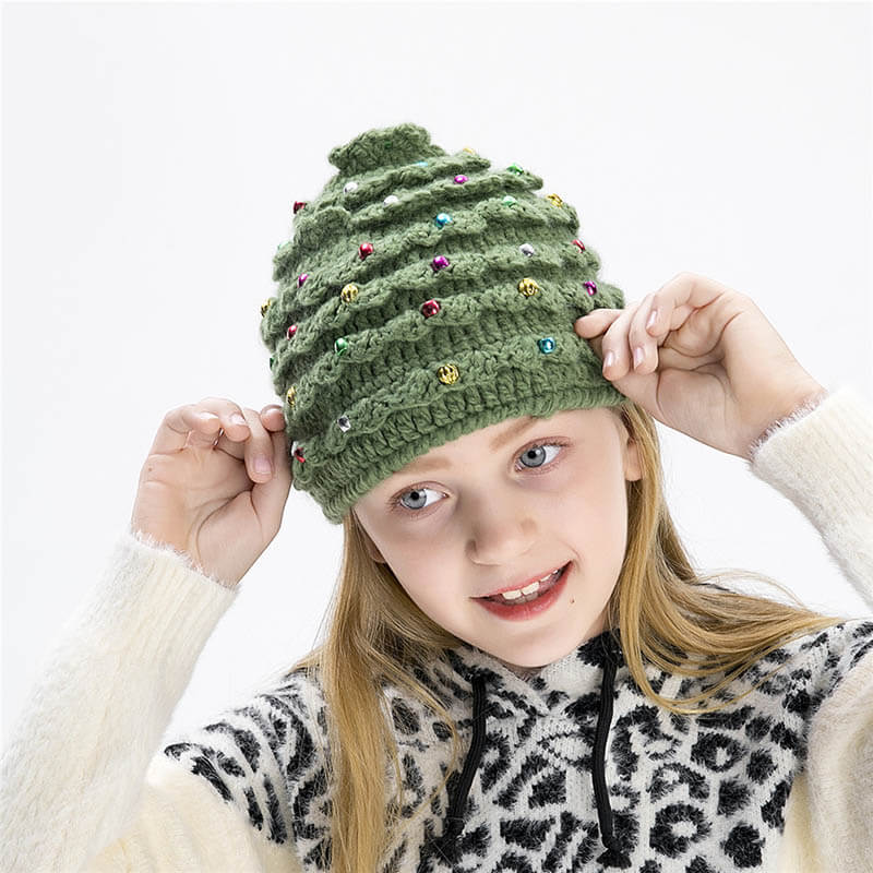 A cute Christmas tree knitted hat! Very comfortable Stretch Fabric.Parents, kids and couples can wear it together.Knitted hats keep warm in winter and have a cute Christmas tree shape.