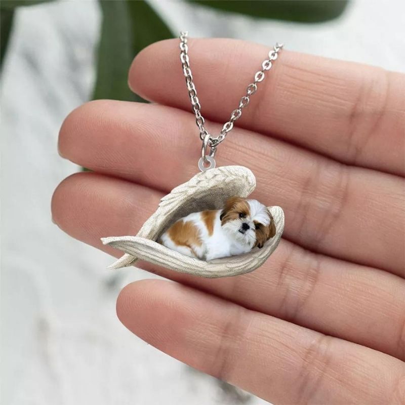 Gold White Shih Tzu Sleeping Angel Stainless Steel Necklace SN009