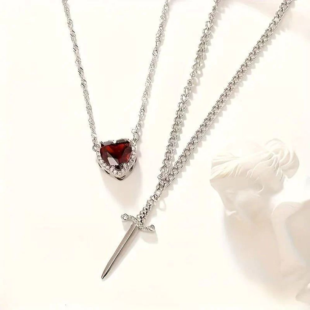 - Size: Heart necklace 17.7+2 inches, sword necklace 19.7+2 inches