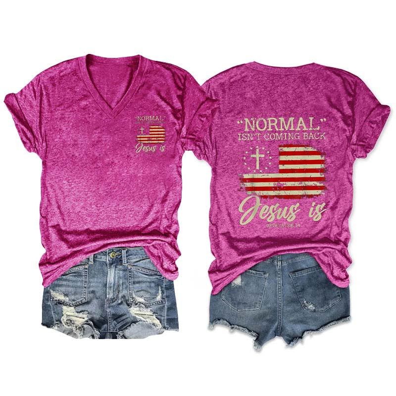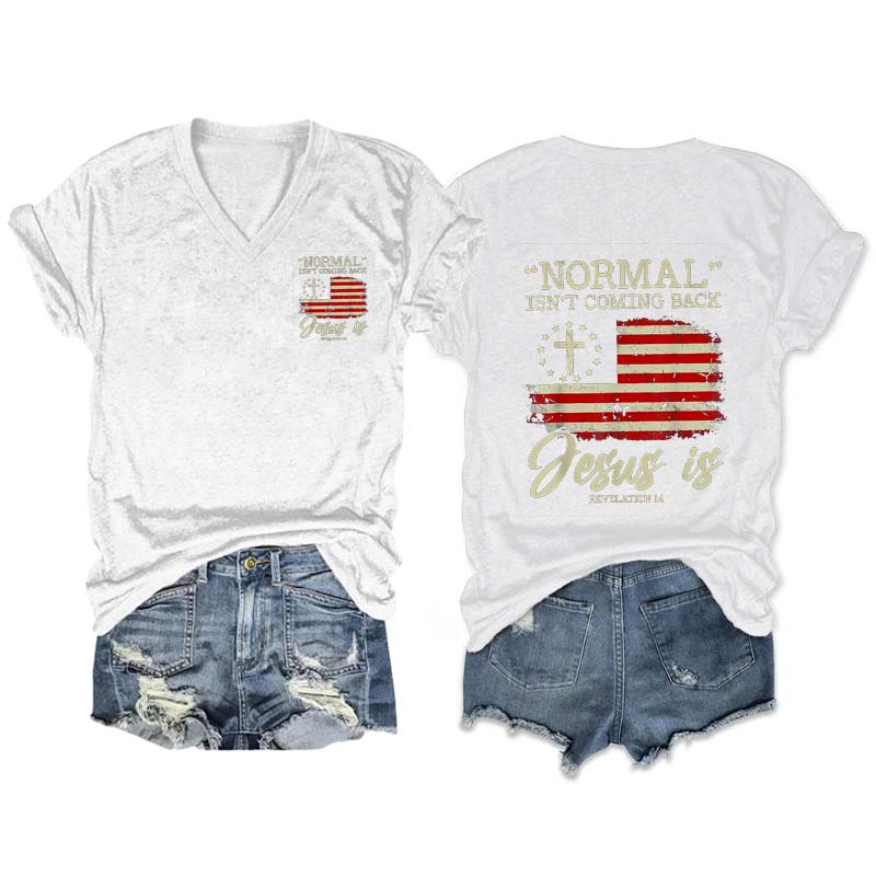Normal Isn't Coming Back Jesus is Revelation 14 V Neck T-Shirt