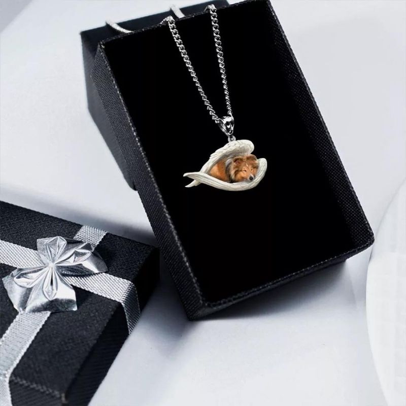 Sheltie Sleeping Angel Stainless Steel Necklace SN044
