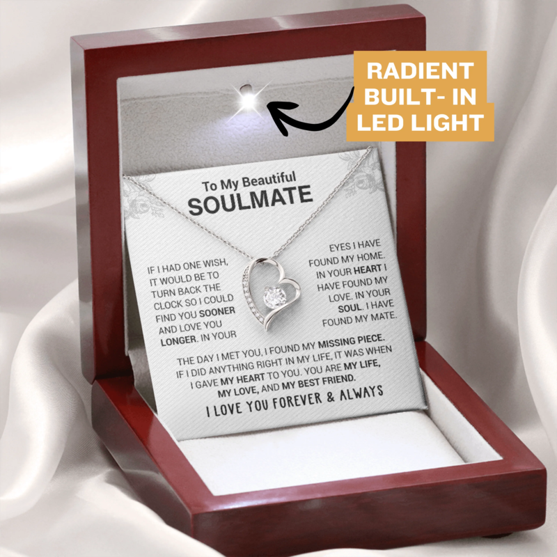 The Message Says: "To My Beautiful Soulmate - If I had one wish, it would be to turn back the clock so I could find you sooner and love you longer. In your eyes, I have found my love. In your soul, I have found my mate. The day I met you, I found my missing piece. If I did anything right in my life, it was when I gave my heart to you. You are my life, my love, and my best friend. I love you forever and always."