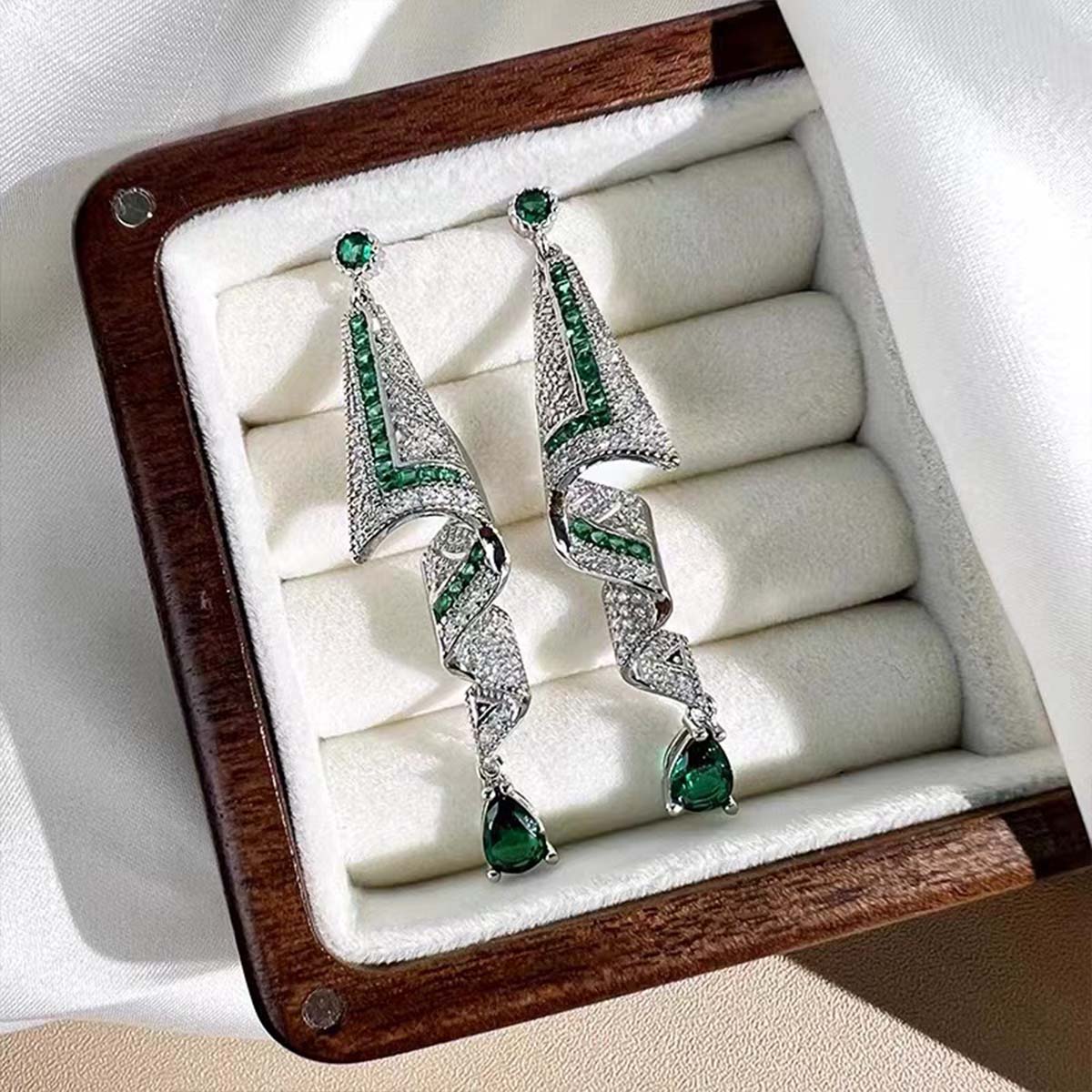 Green: 925 Silver Studs and Silver-Plated Copper Pendants With Lab Created Emerald Stones